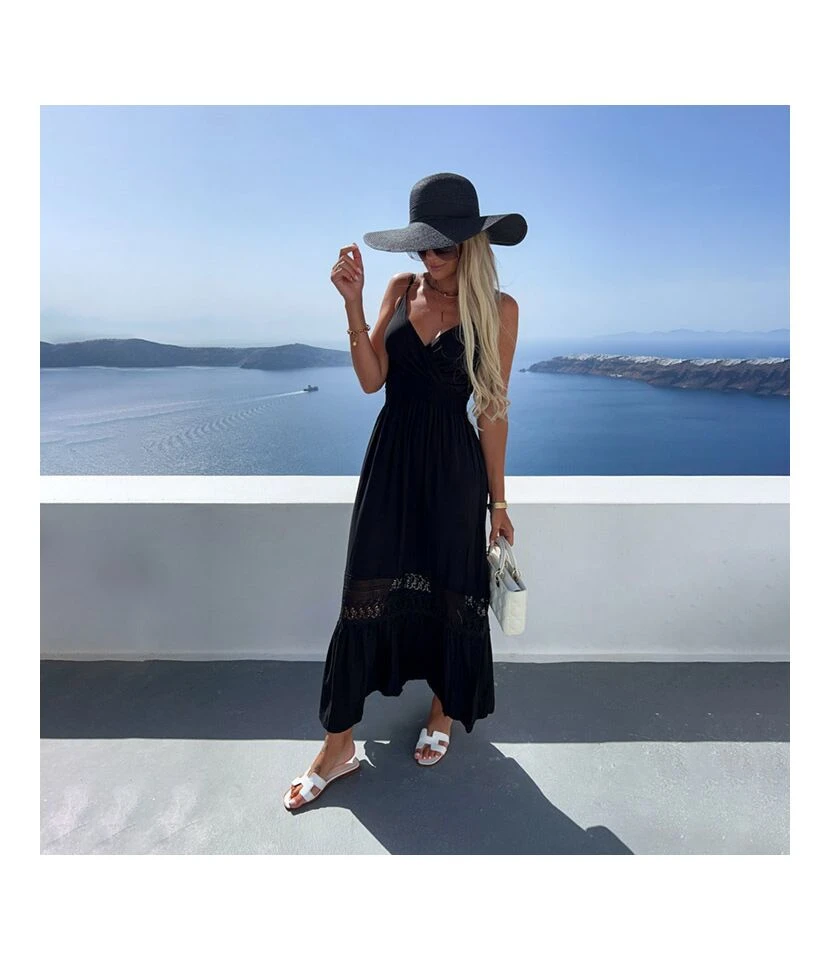 Low-Cut Suspenders Hollow Stitching Solid Color Dress Wholesale Dresses N46230328001726
