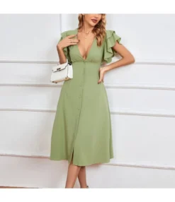 Be the first to review “Low V-Neck Button-Down Open-Back A-Line Skirt Solid Color Dress Wholesale Dresses SDV464510” Cancel reply