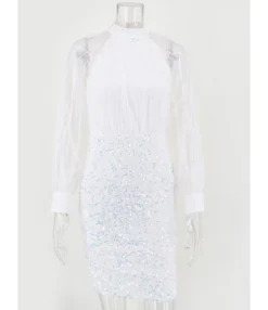 is offering you the most amazing style dress with a great look. You will look very stylish, and at the same time sexy. This dress cost very few dollars. White color is available in this dress. The topmost online store is one of the best places where you can get all the items under one roof. The price of a dress is very reasonable so that every girl can afford it. The elasticity of the dress is inelastic. The most appealing part of the dress in the style of the sleeves. You can get the dress with a more unique, and adorable style. Get ready for your wardrobe for this summer, and make your look more stylish. We are waiting for your order to serve you at our best. When it comes to knowing about the material then it is made up of mesh, polyester, and sequins. Small, medium, large, extra-large, and extra-extra-large sizes are accessible in this dress. You can order us your size. Order Now this and get a full cash refund if you didn’t like it within 30 days.