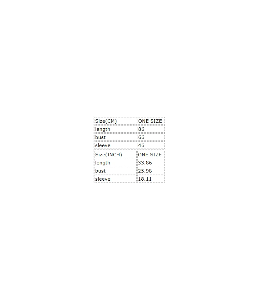 | Size | ONE SIZE |