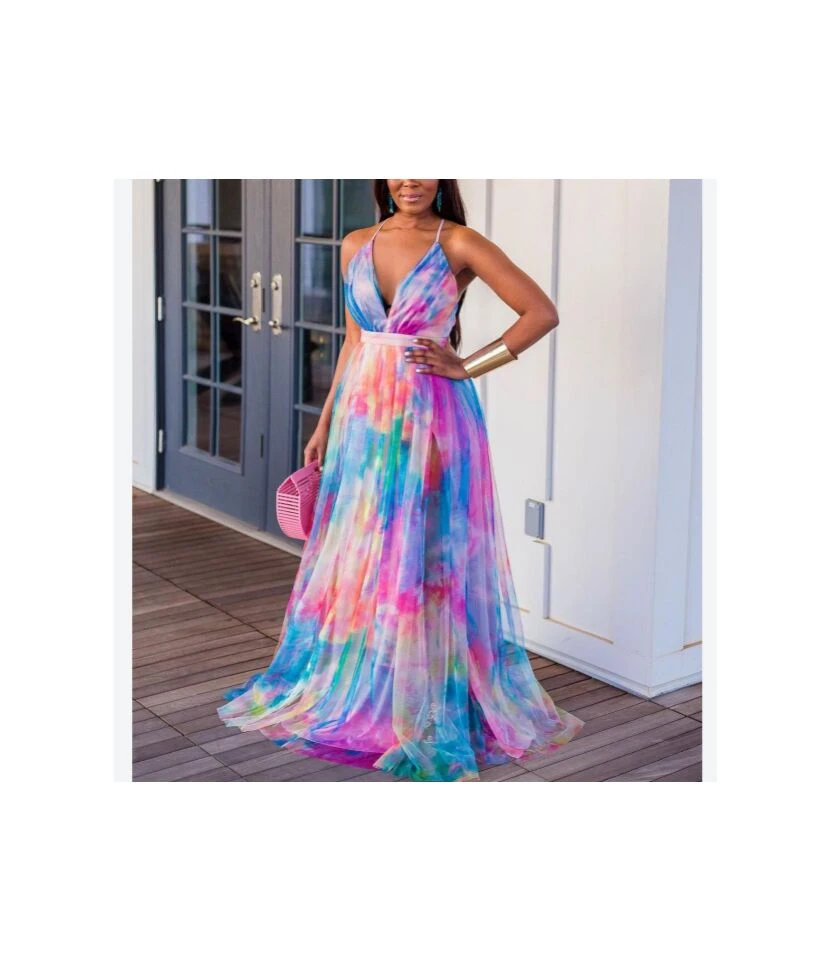 Be the first to review “Mulitcolor Printed Sling Party Dress Sexy Deep V Vacation Wear Wholesale Maxi Dresses Trendy SD204092” Cancel reply