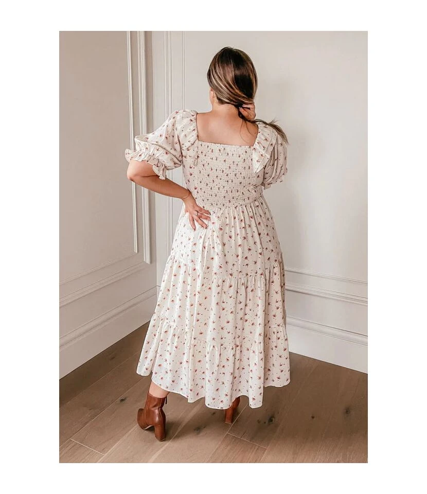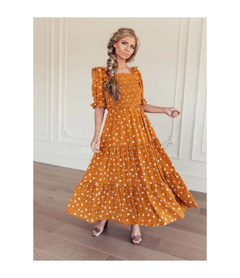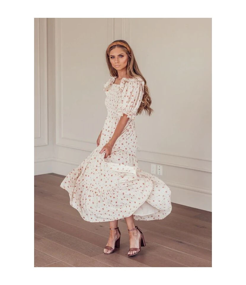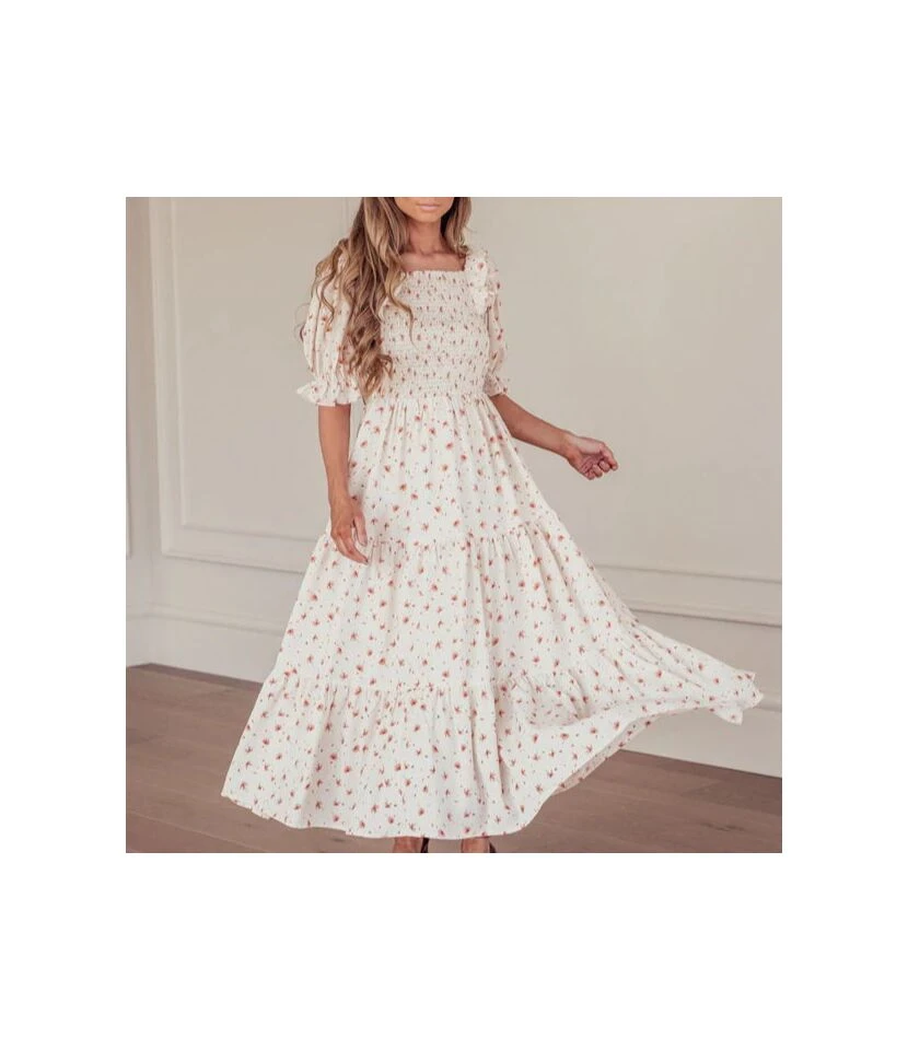 Be the first to review “Plaid & Floral Print Lantern Short Sleeve Square Neck Ruffle Smocked Dress Casual Wholesale Maxi Dresses SDN533109” Cancel reply