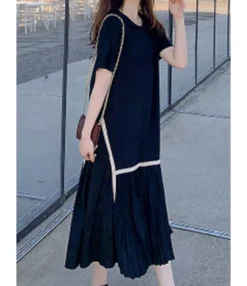 Plus Size Crew Neck Stitching pleated HEM Chiffon Dress comes up with a lot of secret benefits. You will experience it as extremely lightweight and breathable. When it comes to comfort and beating the summer scorching heat then trusts me this outfit is one of the most suitable options. This outfit is especially for plus-size women who have not the capability to tolerate the summer heat. Now there is no need to worry about excessive perspiration because pleated HEM Chiffon Dress is here for you. This outfit’s elegant and floating appearance is just because of the chiffon material. It is very easy to dress up and down without putting in any effort. Ground it with sneakers as well as long boots, both will enhance the appearance. Its print is a color block that captures other interests. Another thing that makes this outfit attractive is the black color, you can also hold on a beautiful purse for completing the outfit look.