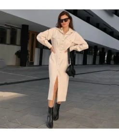 Be the first to review “Pocket Button-Down Slim Fit Commuter Lapel Belt Shirt Dress Wholesale Dresses SDV463842” Cancel reply