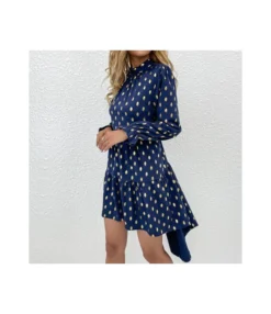 Casual V-Neck Lapel Mini Dress Single-Breasted Long Sleeve Bodycon Wholesale Dresses SDN562274