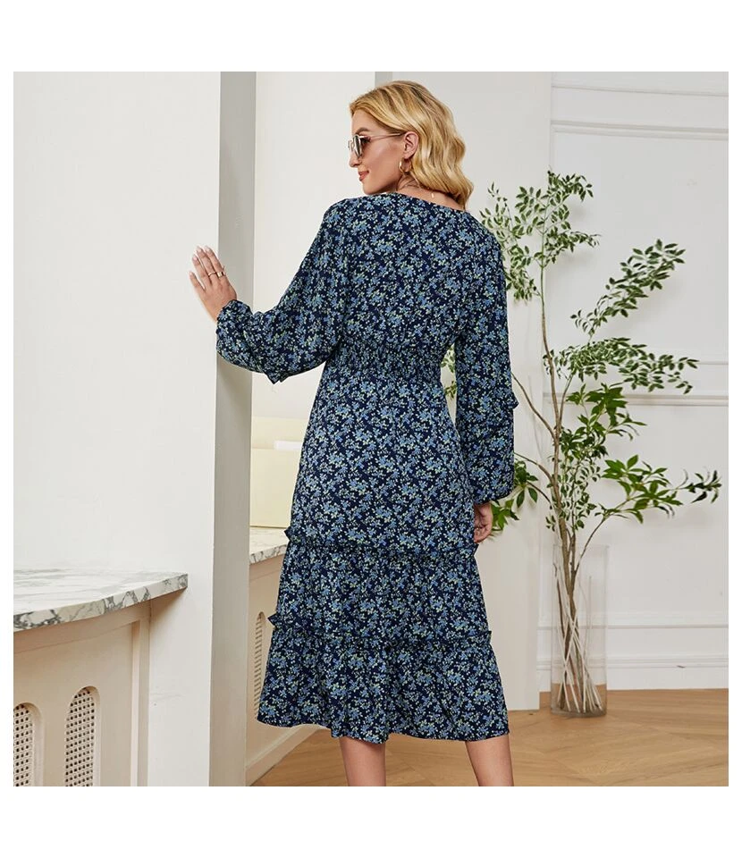 Casual V-Neck Lapel Mini Dress Single-Breasted Long Sleeve Bodycon Wholesale Dresses SDN562274