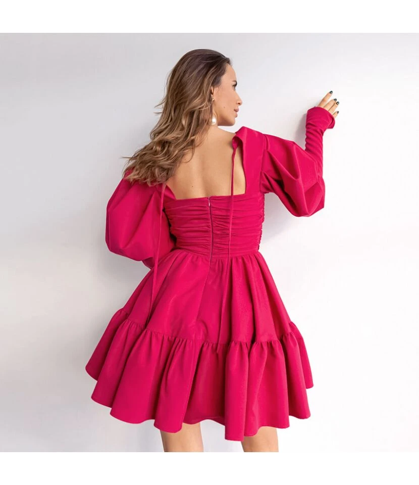 Puff Party Niche Puff Sleeve Stylish Pleated Solid Color Dress Wholesale Dresses N461523021400186
