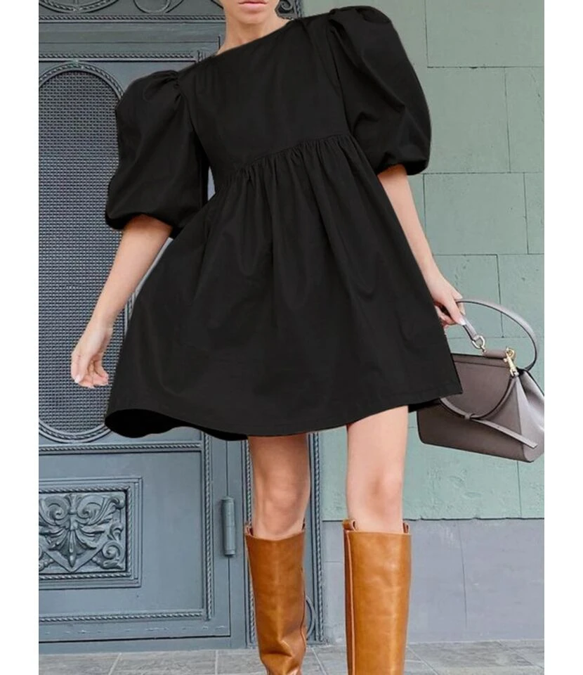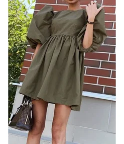 If you wonder about the for-puff sleeve with the solid neck and loose style dress, you are in the right place. The is offering clothing with beautiful colors. These colors are baby blue, light green, nude, army, and black. Pick your favorite one and chill. This dress can be used when you plan to go outside with your family function, parties, or birthdays celebrations. This is the get-up you can wear in the spring and autumn. The incredible thing about the dress is the puff sleeve and the round neck. You don’t need to wear the necklace, but as a fashion tip, you can use the matching wristwatch or handbag. This is the decent combo ever. The attire is made up of cotton blends, and the cotton is so soft that this outfit never feels perplexed. As far as the elasticity of the dress is concerned, the material is inelastic. When it comes to knowing about the pattern, it is plain and proper. Juts shop the SheStar and checkout the latest design as well. The price for each dress is $14.12 with small, medium, and large size.