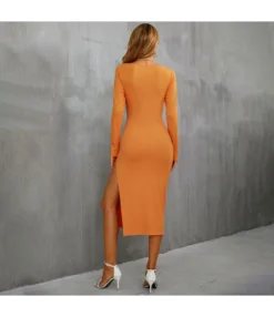 Casual V-Neck Lapel Mini Dress Single-Breasted Long Sleeve Bodycon Wholesale Dresses SDN562274