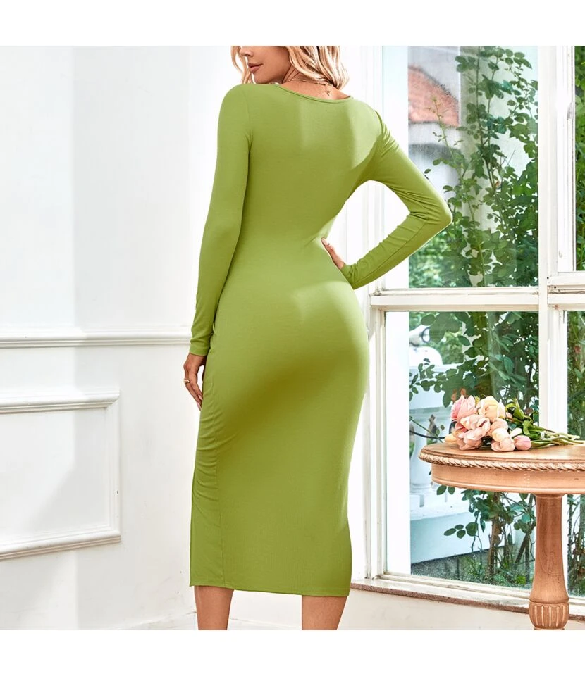 Sexy Cutout Long Sleeves Midi Dress Solid Color Bodycon Slit Wholesale Dresses SDN561523