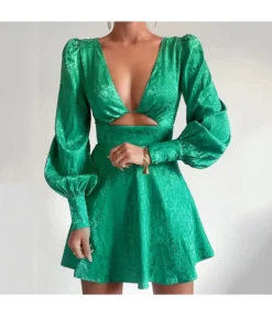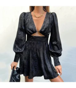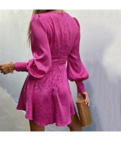 Casual V-Neck Lapel Mini Dress Single-Breasted Long Sleeve Bodycon Wholesale Dresses SDN562274