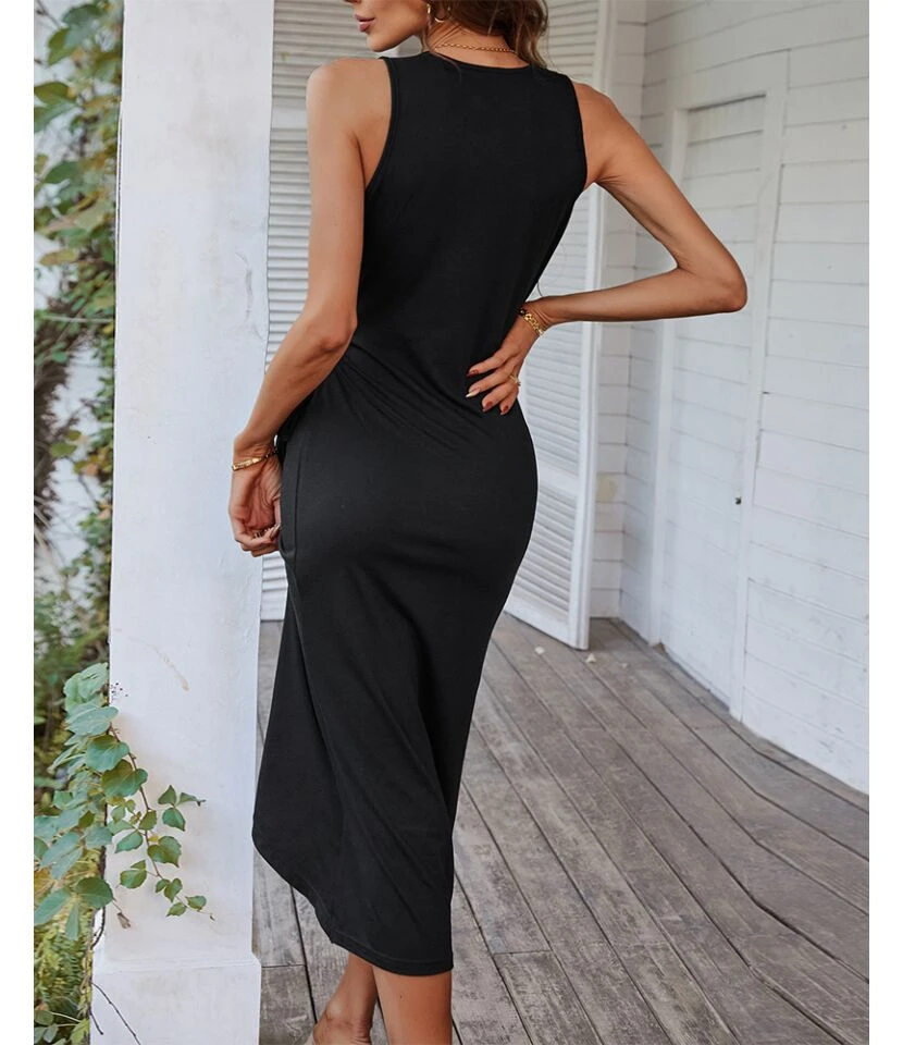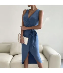 Be the first to review “Sexy Deep V-Neck Slit Dress Sleeveless Solid Color Lace-Up Midi Wholesale Dresses SDN560619” Cancel reply