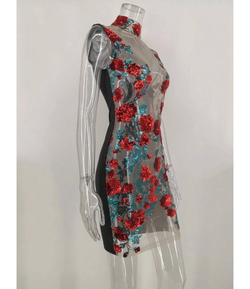 Sexy Flower Embroidery Sequins Mesh Party Dress