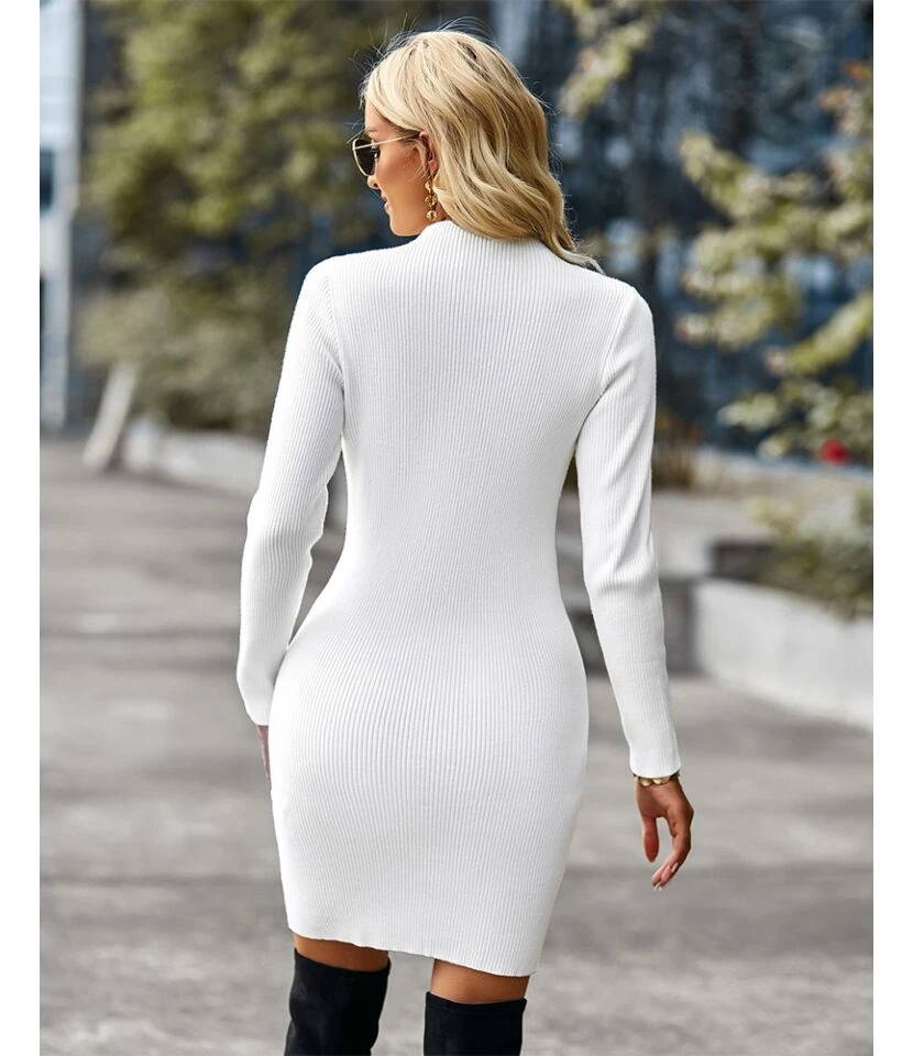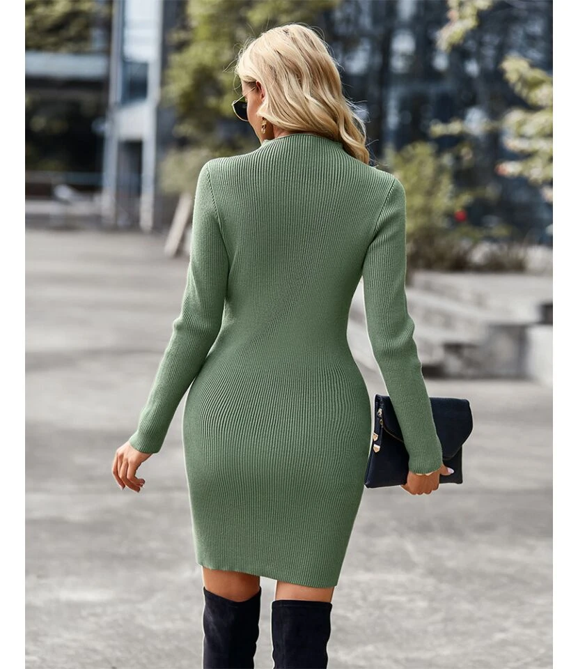 Sexy Half Turtleneck Cutout Knit Dress Solid Color Long Sleeve Bodycon Wholesale Dresses SDN561054