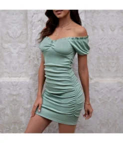 Be the first to review “Sexy Off Shoulder Pleated Dress Puff Sleeves Solid Color Bodycon Wholesale Dresses SDN560563” Cancel reply