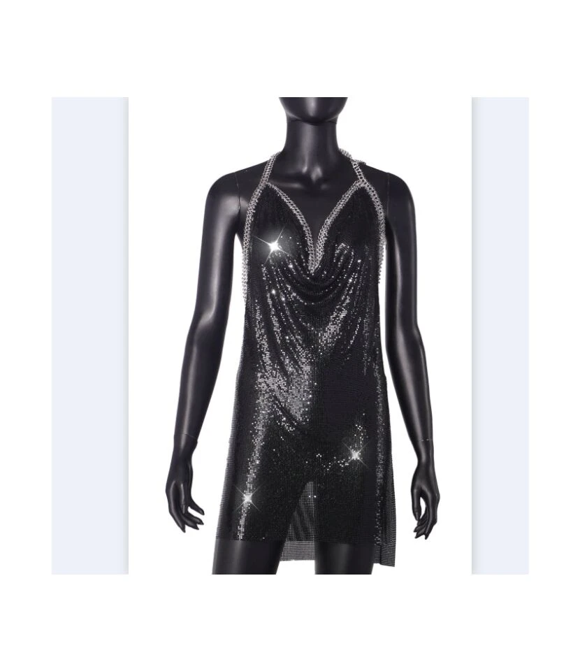 Elegant Sexy V-Neck Slip Sequin Maxi Slit Dress Evening Sleeveless Wholesale Dresses SDN562258