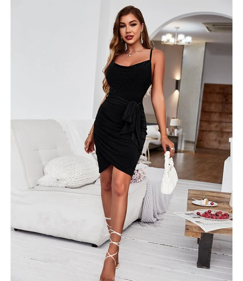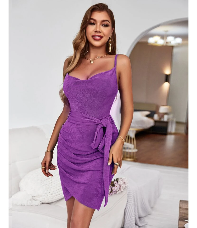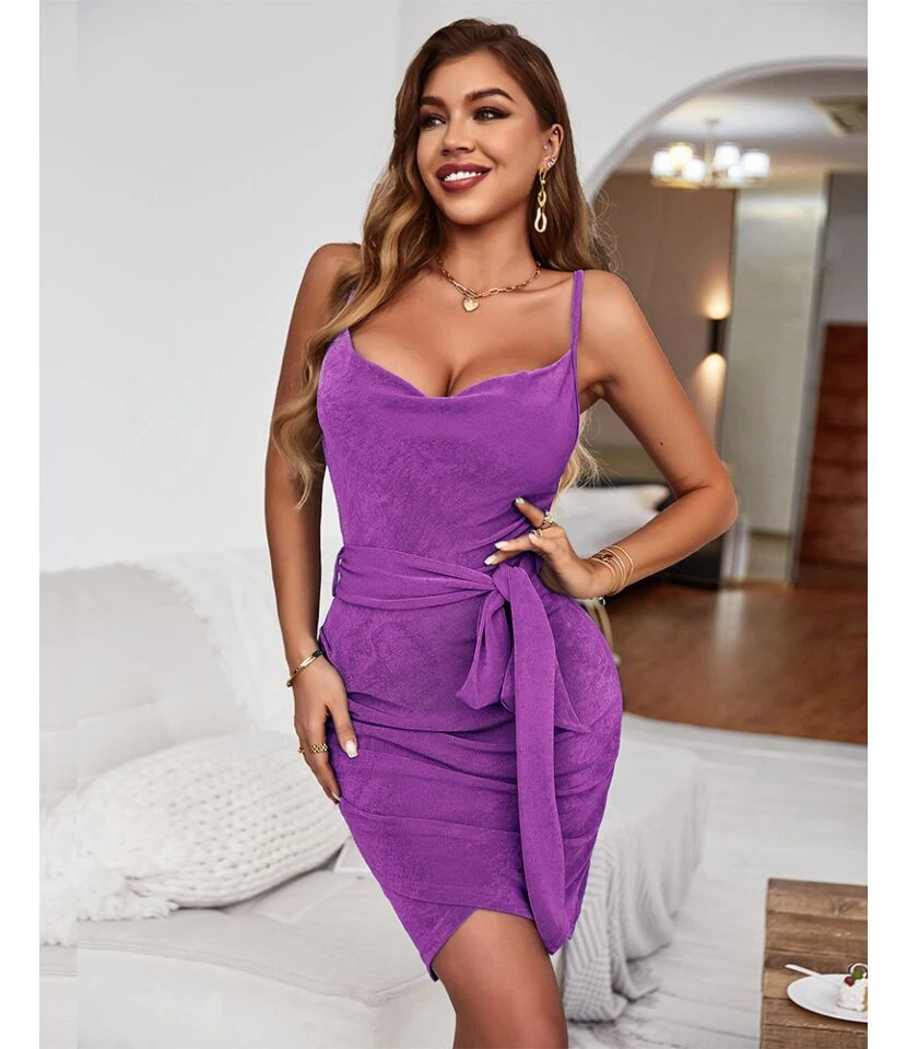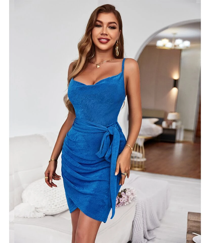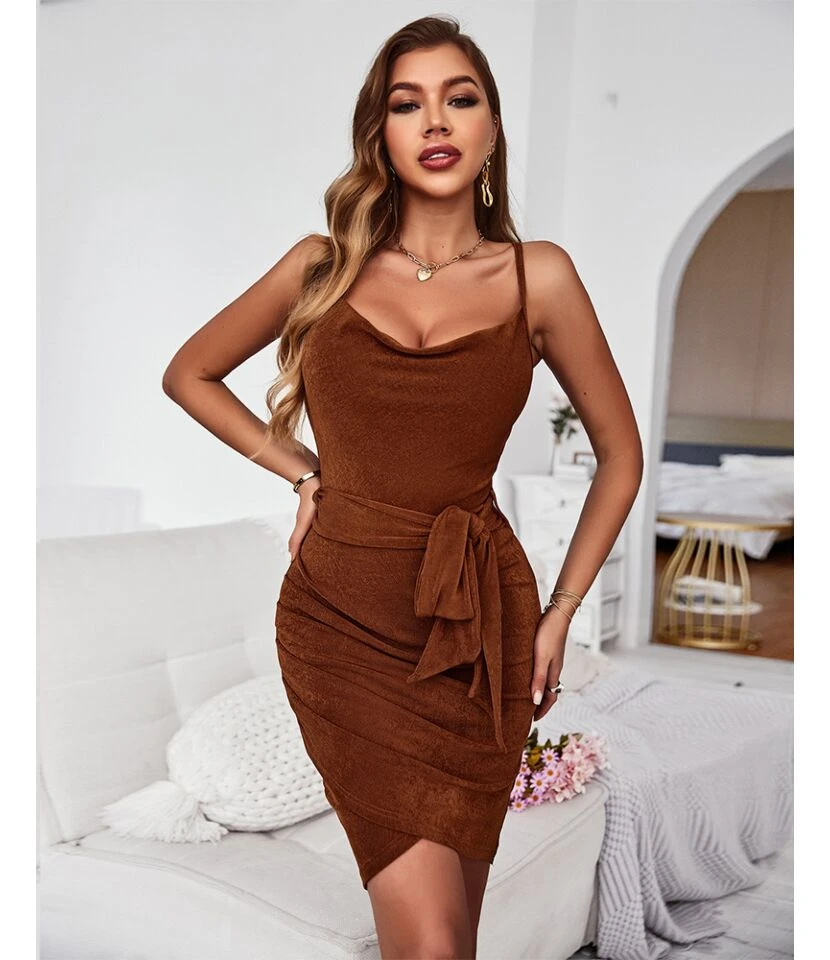 Sexy Suspenders Mini Dress Solid Color Lace-Up Irregular Body-Con Wholesale Dresses SDN560666