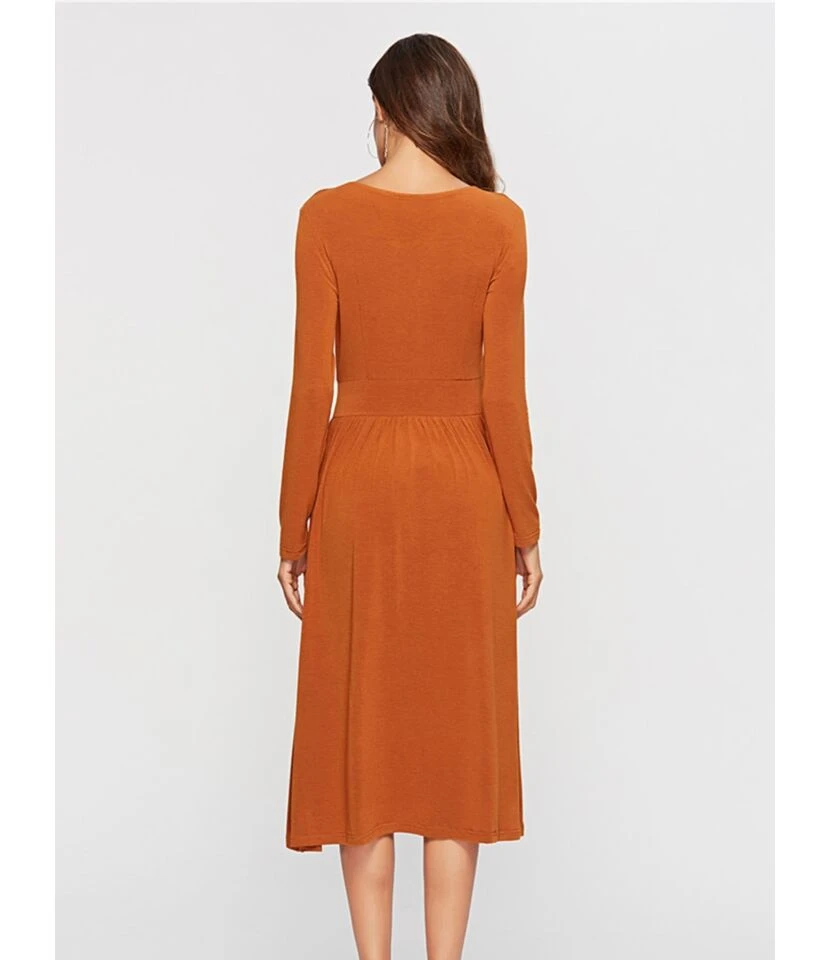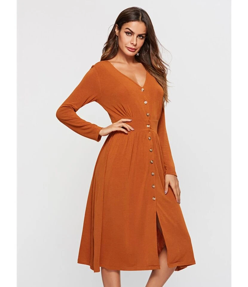 Be the first to review “Sexy V-neck Button Front Long Sleeve Split Hem Dress” Cancel reply