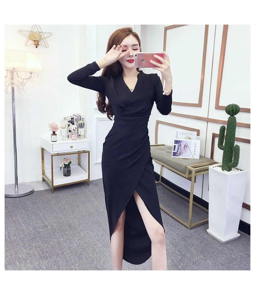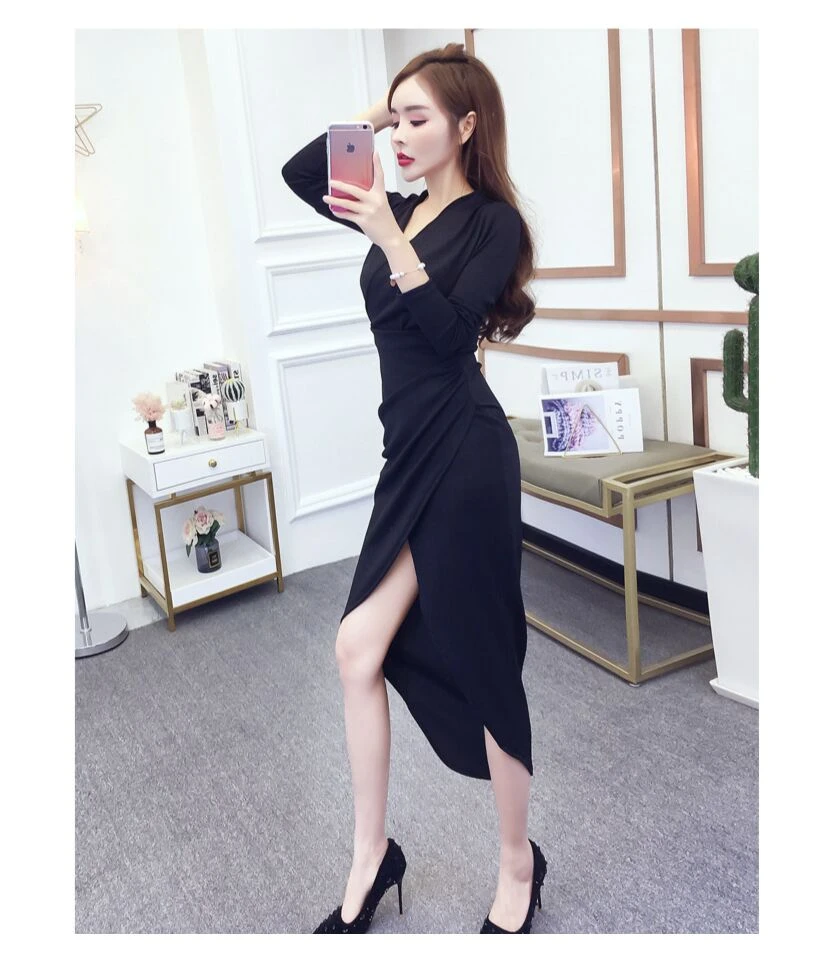 Sexy V Neck Long Sleeve High Waist Prom Bodycon Midi Dress Wholesale Dresses SD5117481