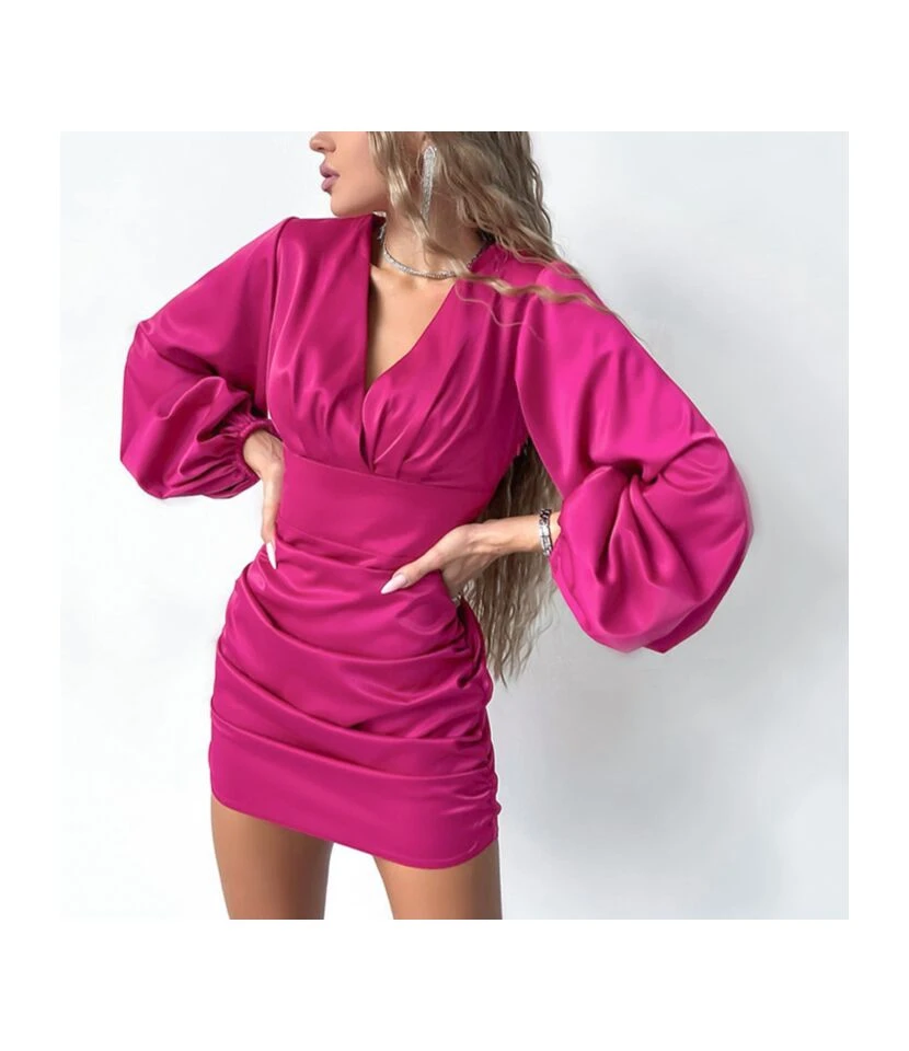 Casual V-Neck Lapel Mini Dress Single-Breasted Long Sleeve Bodycon Wholesale Dresses SDN562274