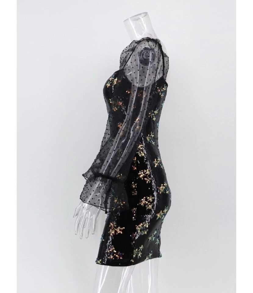 Be the first to review “Sheer Ruffle Sleeve Flower Pattern Sequin Dress” Cancel reply