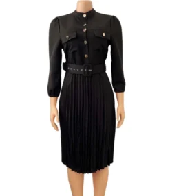 Be the first to review “Single Breasted Solid Pleated Shirt Dress With Belt” Cancel reply