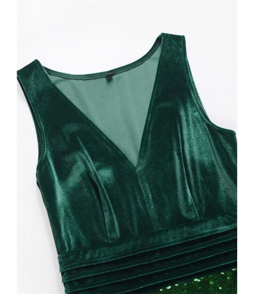 V Neck Velvet Sequin Patchwork Evening Maxi Dress
