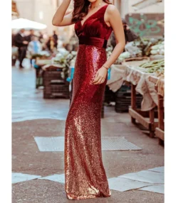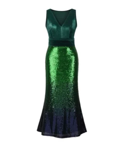 If you are looking for a party dress that can add glam and glitz factor to your look then don’t hesitate to invest in V Neck Velvet Sequin Patchwork Evening Maxi Dress. This outfit is simply fabulous, just look at it from top to bottom its detailing speaks its beauty. This outfit is not demanding just a piece of diamond Necklace is enough for completing the outfit look.
