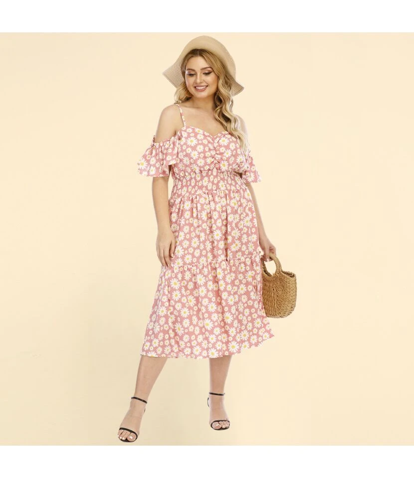 This sling sexy off-shoulder dress for women is so lively, charming and adorable as everyone out there is well aware of the fact that floral print has a charisma that can make anyone fall in love with it. Floral isn’t just a print, but it’s a mood that gives a positive vibe and can ultimately reverse your bad mood. This dress is so stunning because of the pink base and these white florals adding a mesmerizing effect. It is very pleasant to look at and the style in which it is designed, like the pleated waistline and bottom, is so amazing and adds flares to it. This floral print with such a bold off-shoulder style not only looks vibrant and lively but also possesses a sassy kicky vibe. Try it with a pair of high heels, fleets or strappy flats depending on your mood and comfort level. You can go for a high ponytail, or bun, or either open hair all can make you look cool.