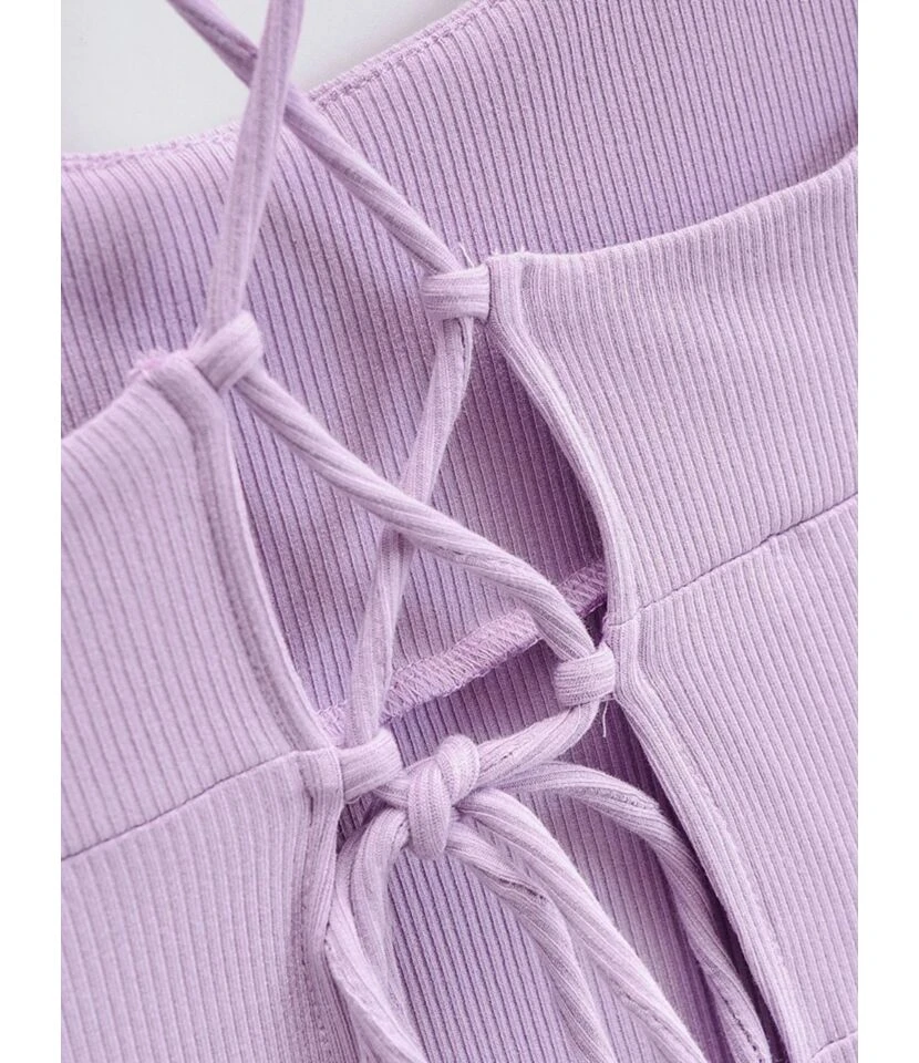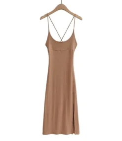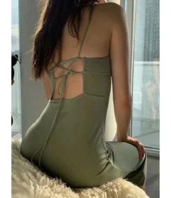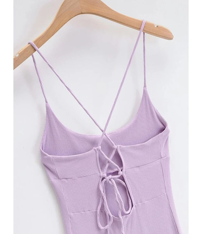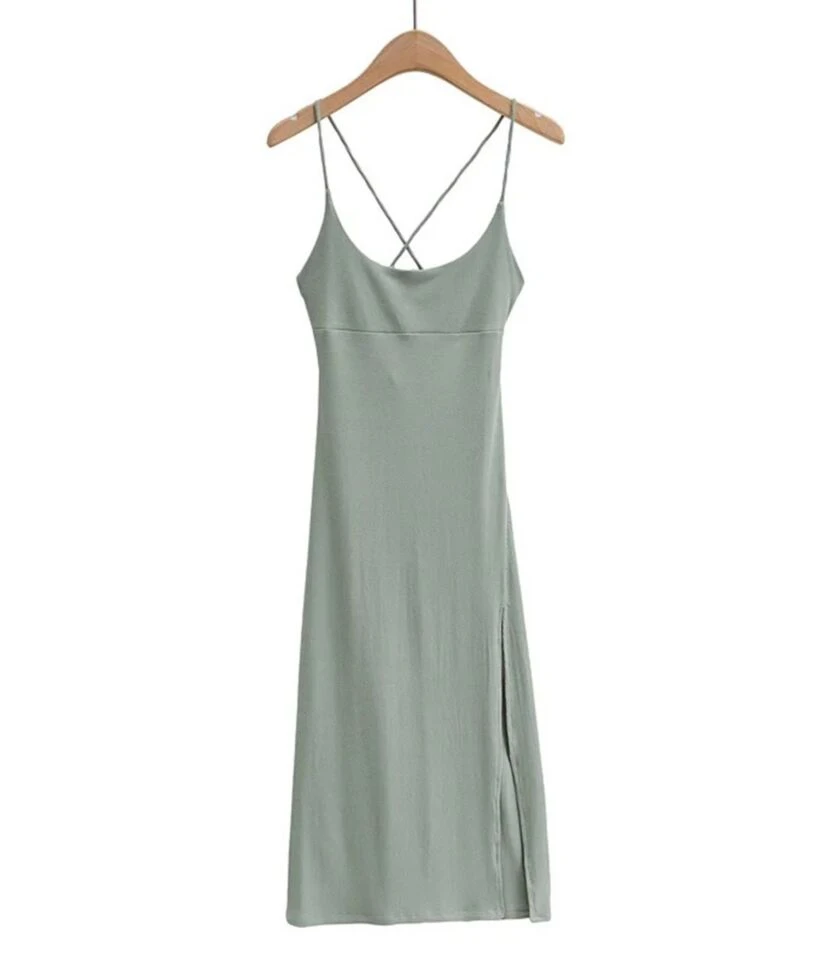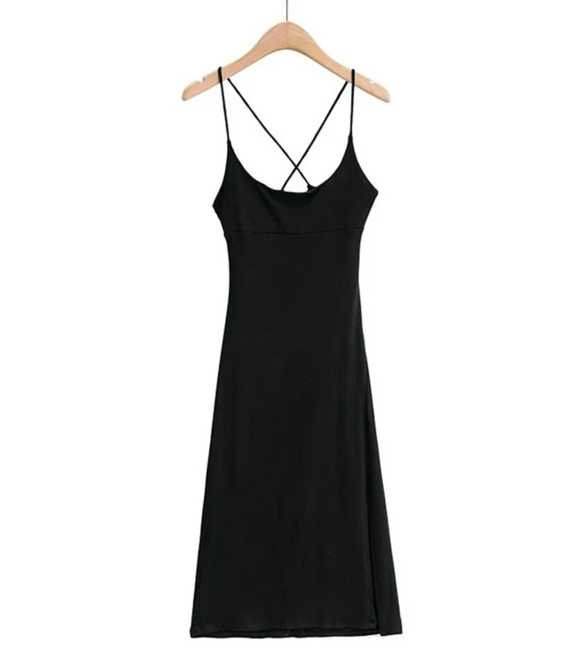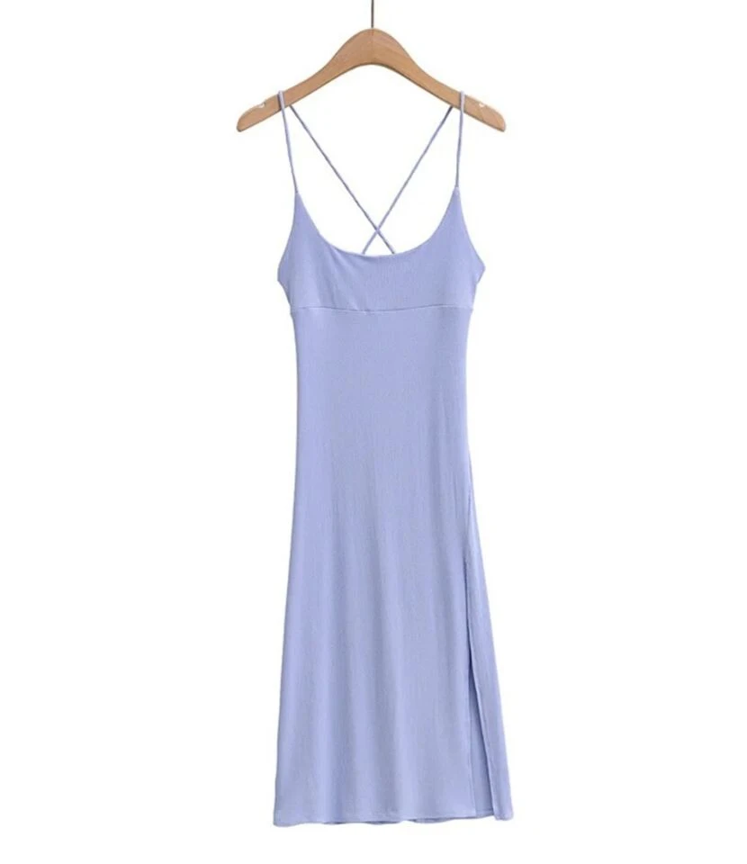Solid Color Cross Back Tie Split Thigh Suspender Dress
