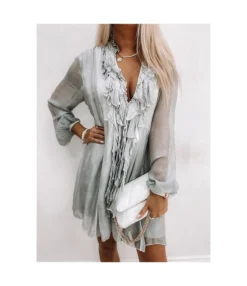 Be the first to review “Solid Color Deep V Ruffles Short Lantern Sleeve Midi Dress Loose Fashion Wholesale Dresses SD531222” Cancel reply