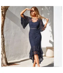 Be the first to review “Solid Color Flare Sleeve Lace Slim Elegant Ruffled Fishtail Prom Evening Dress Wholesale Dresses SDN533602” Cancel reply