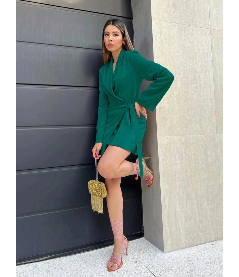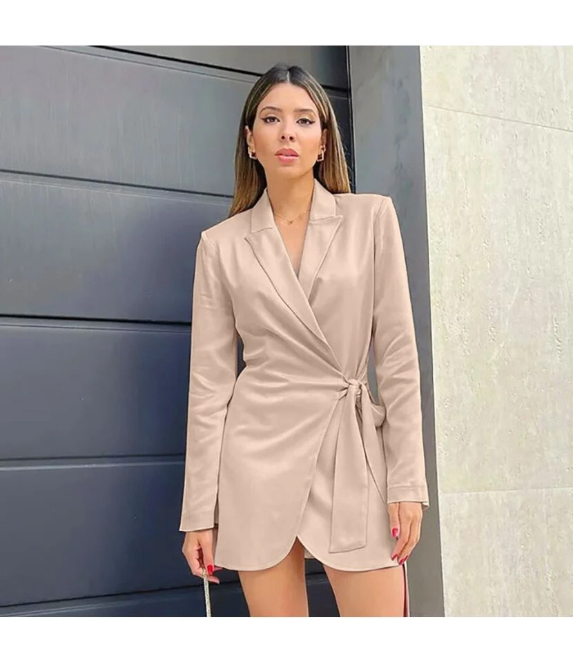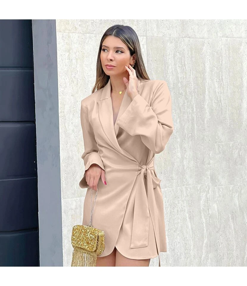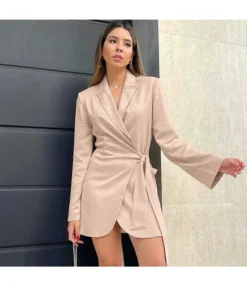 Casual V-Neck Lapel Mini Dress Single-Breasted Long Sleeve Bodycon Wholesale Dresses SDN562274