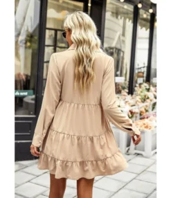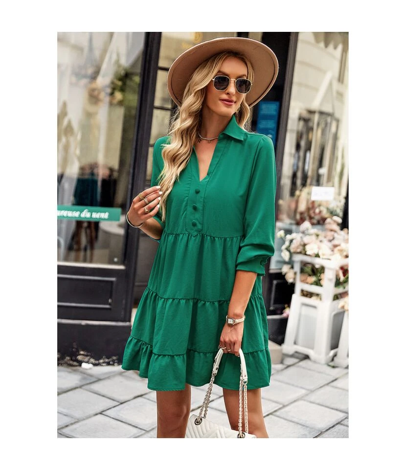 Lapel Button Knit Short Sleeve Plain Bodycon Dress 210601763