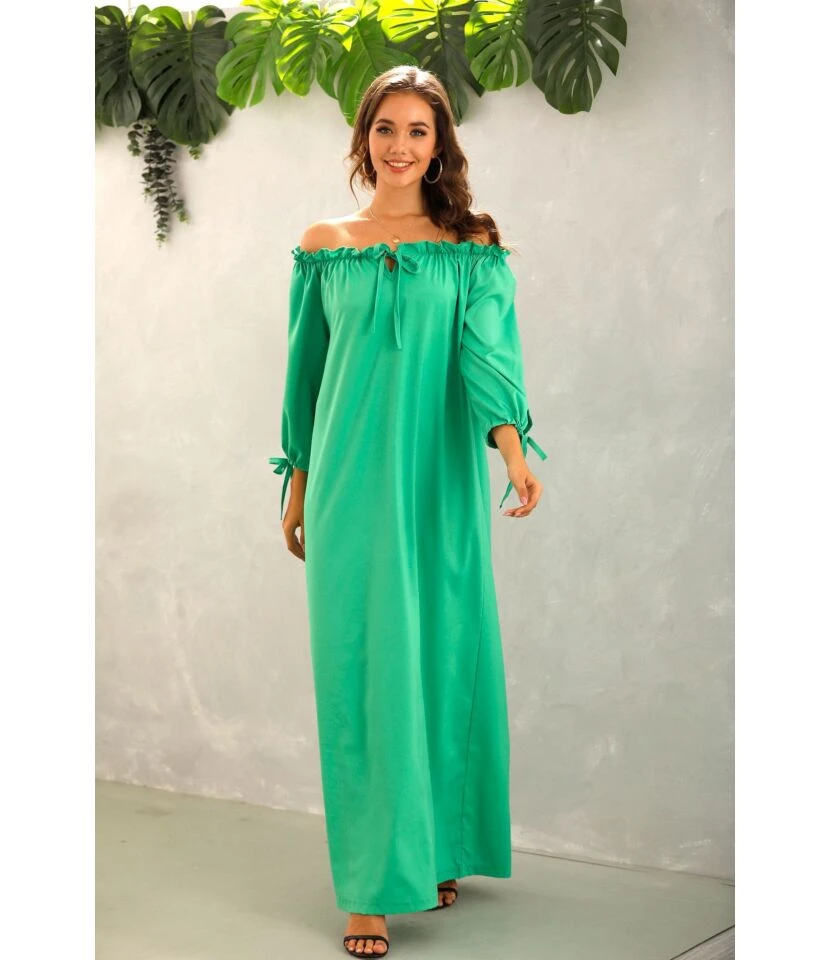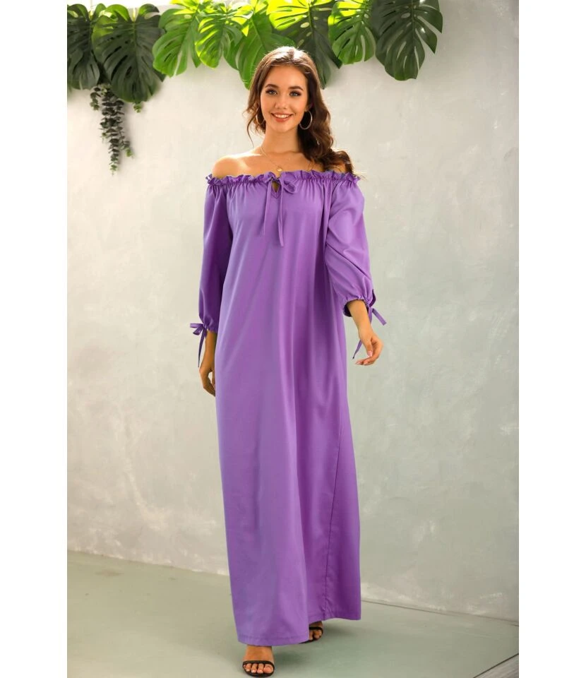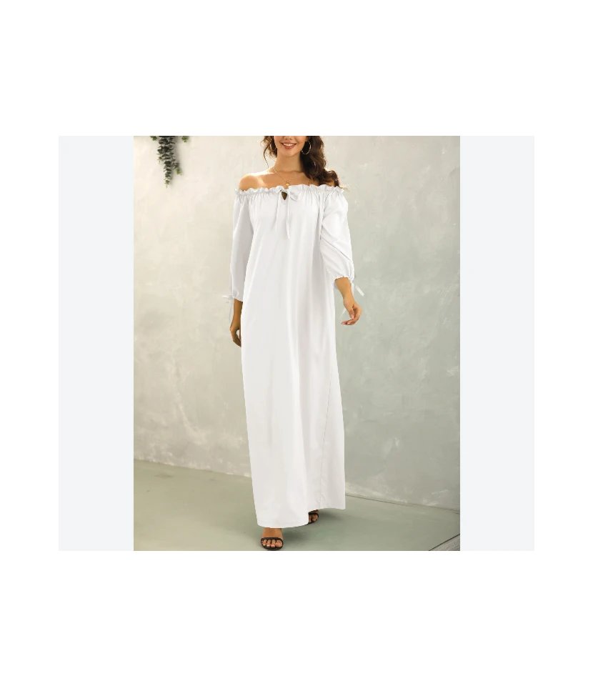 Solid Color Off Shoulder Lantern Sleeve Ruffles Loose Dress Casual Wholesale Maxi Dresses SDN532794