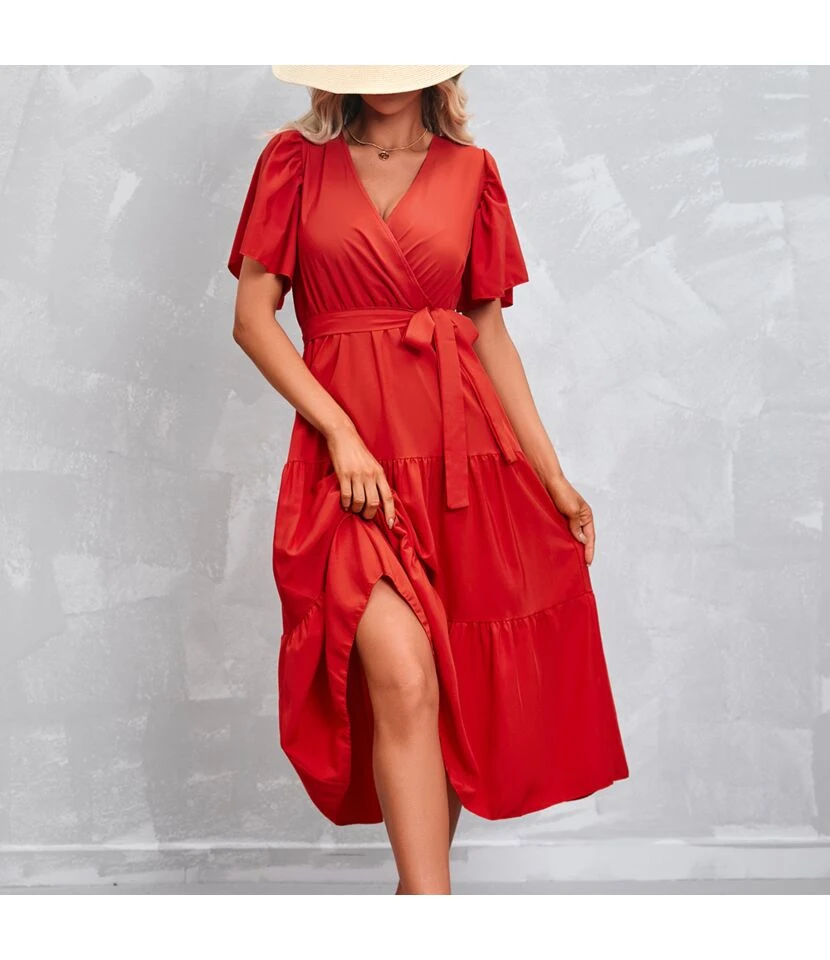 Be the first to review “Solid Color V-Neck Short Sleeve Mid-Length Smocked Dress Casual Wholesale Dresses SDN533393” Cancel reply