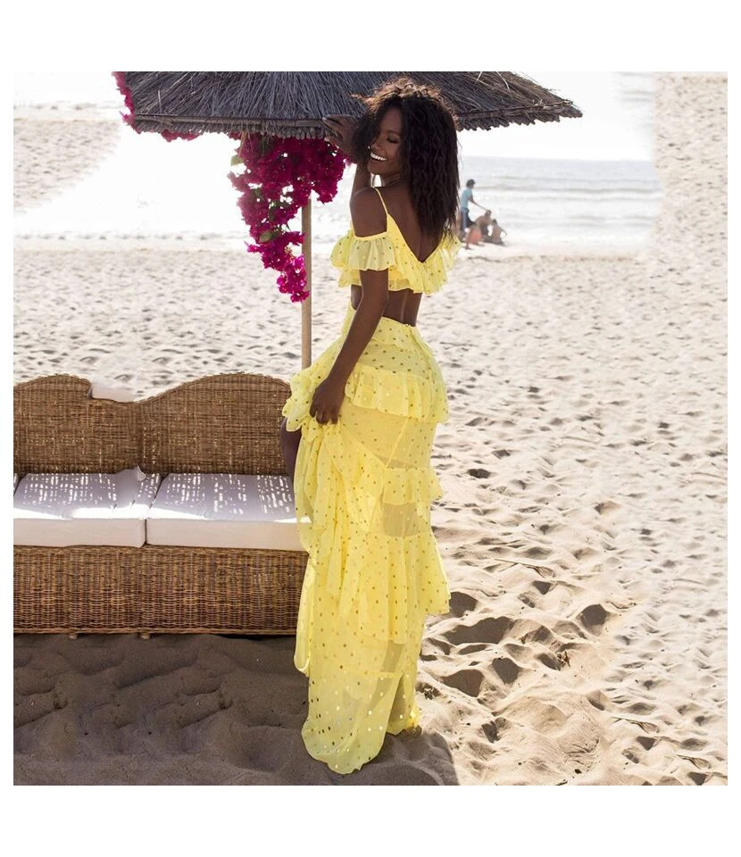 Summer Sequin Cutout Holiday Sling Ruffle Dress Sexy Beach Trendy Wholesale Maxi Dresses SD531707