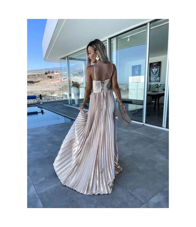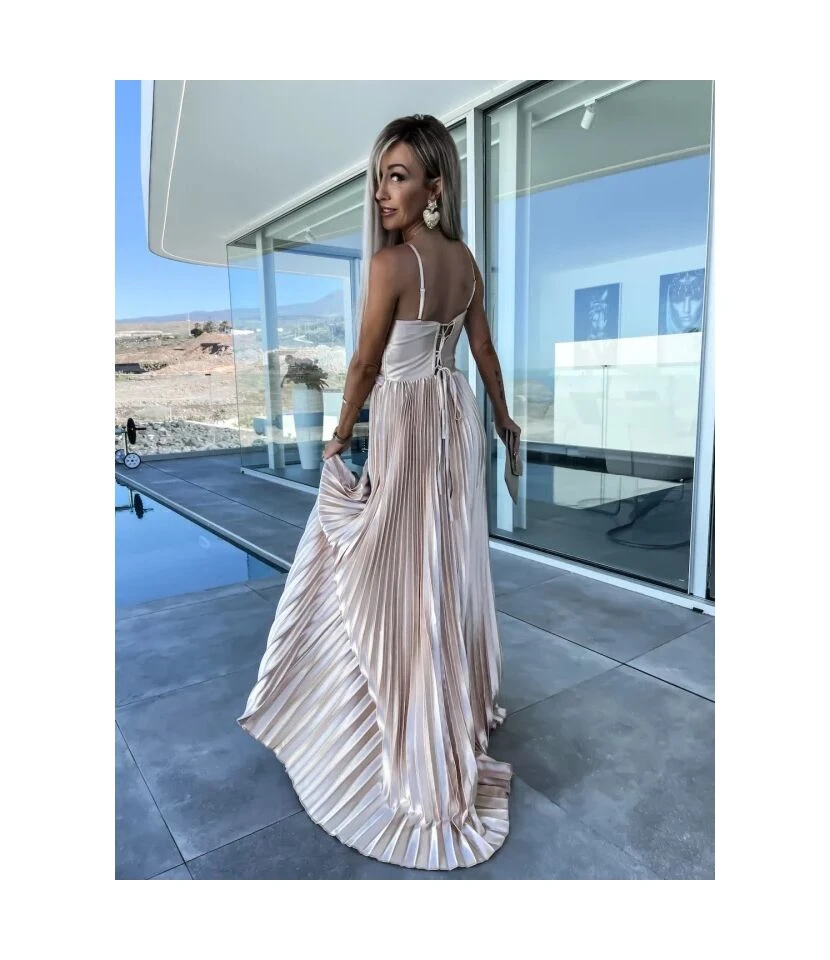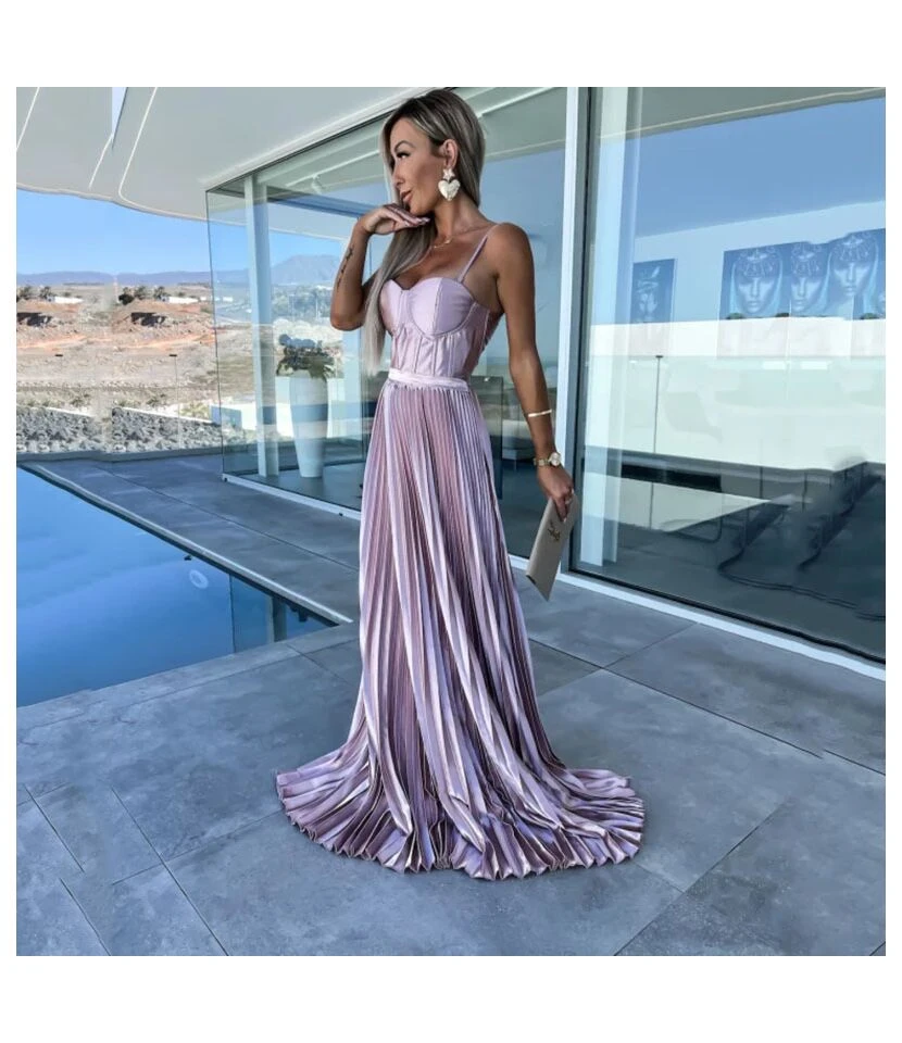 Temperament Mopping Sling Satin Zipper Pleated Party Dress Wholesale Dresses N46723032800112