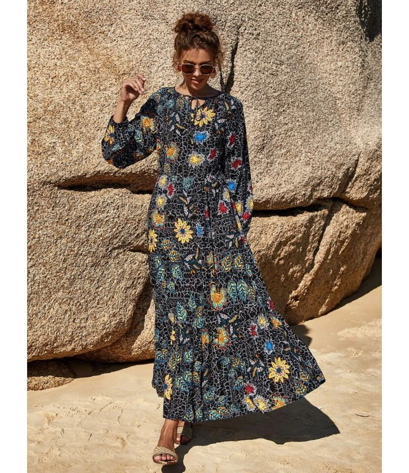 Be the first to review “Tied Round Neck Flower Print Maxi Dress” Cancel reply