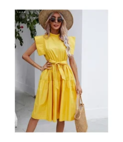 Lapel Button Knit Short Sleeve Plain Bodycon Dress 210601763