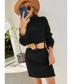 Loose knit sweater dress for women. Turtleneck and Long sleeves provide enough warmth for you in the cool fall days.