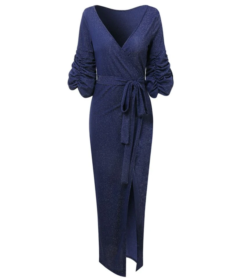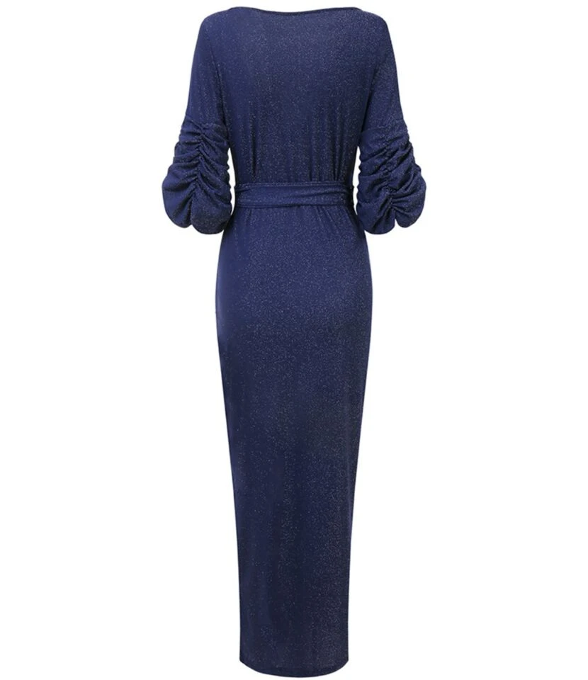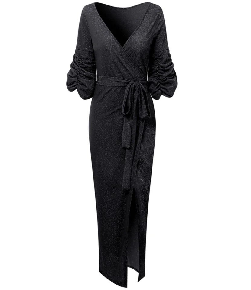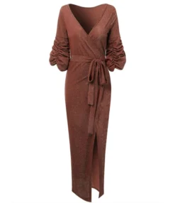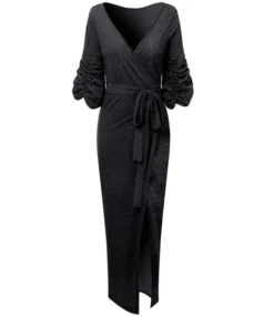 Be the first to review “V Collar Ruched Puff Sleeve Belted Wrap Maxi Dress” Cancel reply