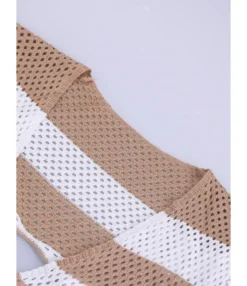 This V-neck Cutout Stripe Knitted Beach is the new fashion trend is for high-end elegance. The version of this product has a high-end feel to it. The v neck cut-out is designed in a lovely and adorable way. The design is relaxed, the length has been altered, and the proportions of the figures enhance the ambiance. It has a fantastic sense of style, but it also catches the joyful and charming charm of ladies brilliantly. It has a feminine V-neck and a relaxed average fit. The bodice features a beautiful stripe knit and a beach dress silhouette to highlight your figure. This lovely beach dress with delicate stripe knit and v neck cut out will take you from the office to dinner. With premium wardrobe basics, we set out to enrich your daily routine. With ageless classics and seasonally essentials crafted from fine stripe knit effortless sophistication, and a minimalist aesthetic it’s a must-have.
