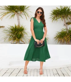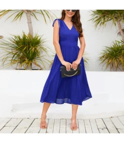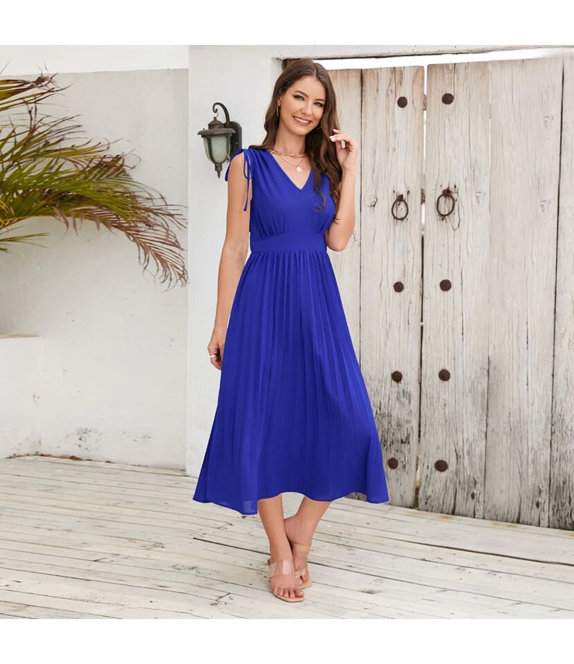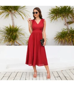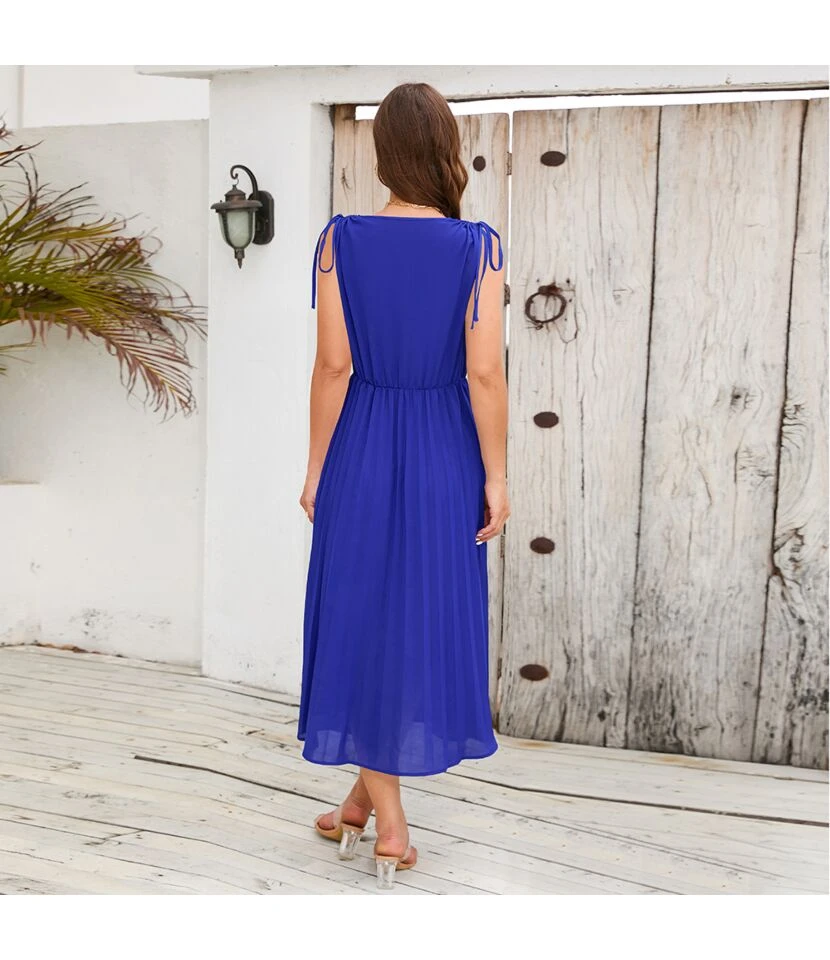 Be the first to review “V-Neck Drawstring Sleeveless Slim Fit Pleated Solid Color Midi Dress Wholesale Dresses SDV463940” Cancel reply