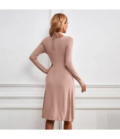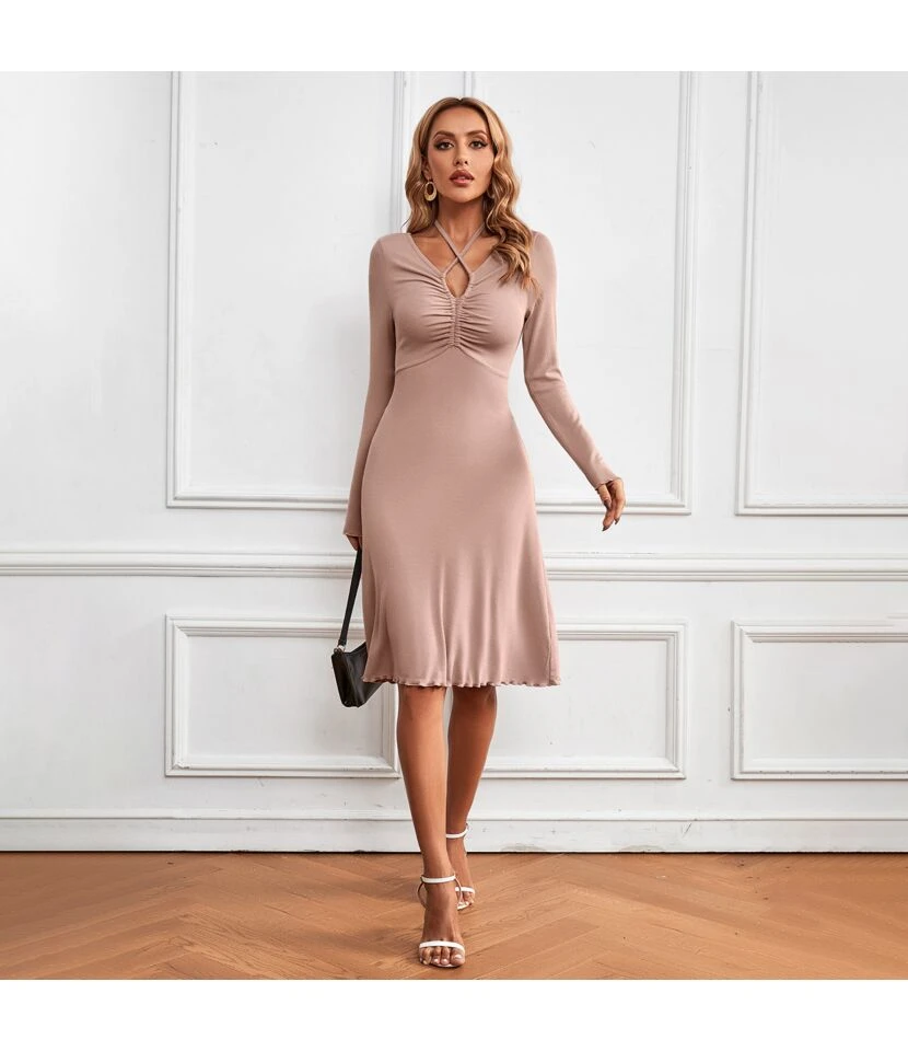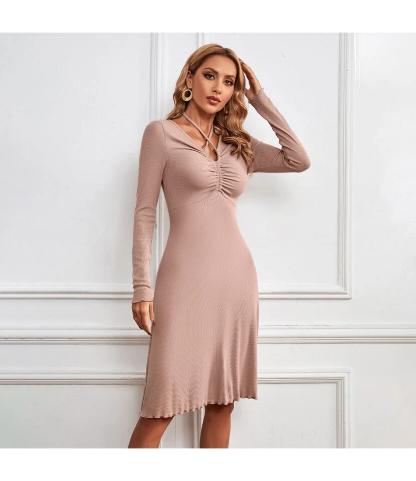 Casual V-Neck Lapel Mini Dress Single-Breasted Long Sleeve Bodycon Wholesale Dresses SDN562274