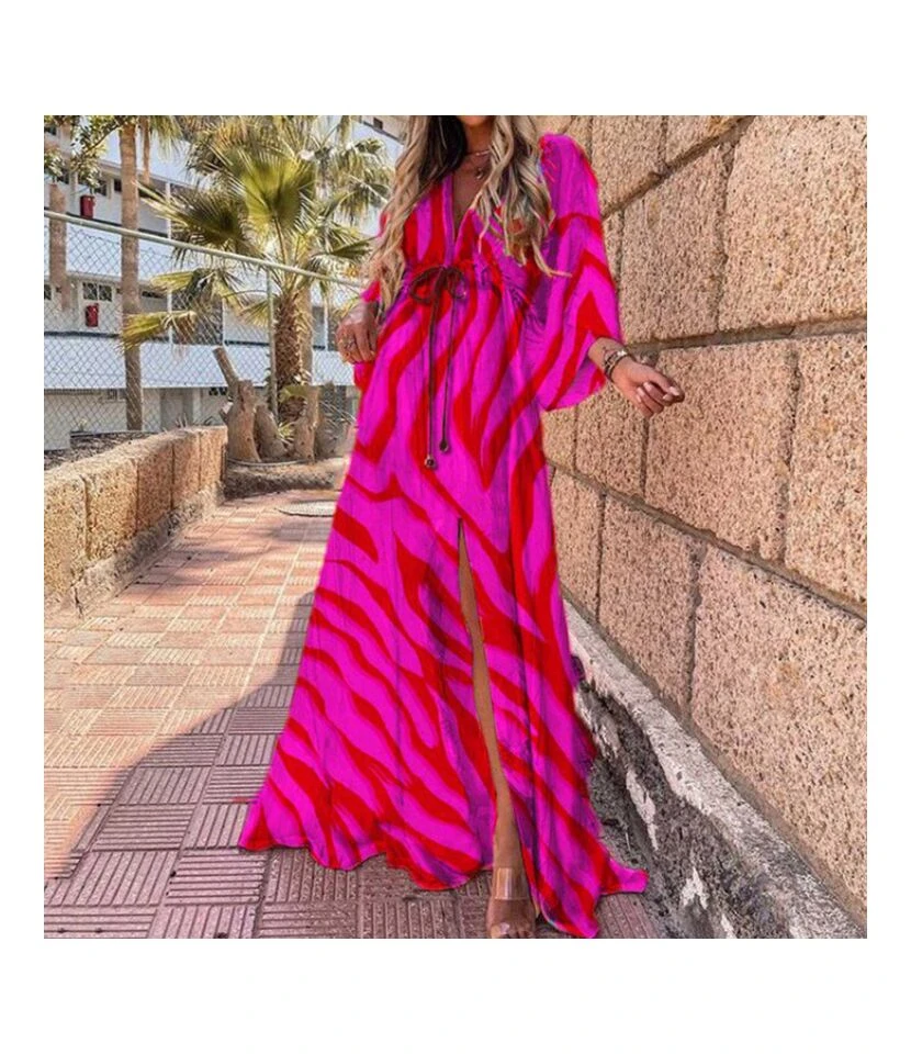 V Neck Ties Single Breasted Printed Loose Dress Wholesale Dresses N462823032800172