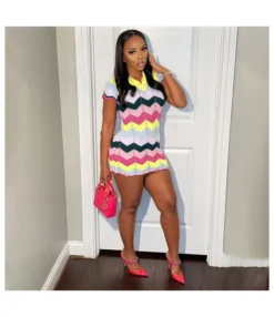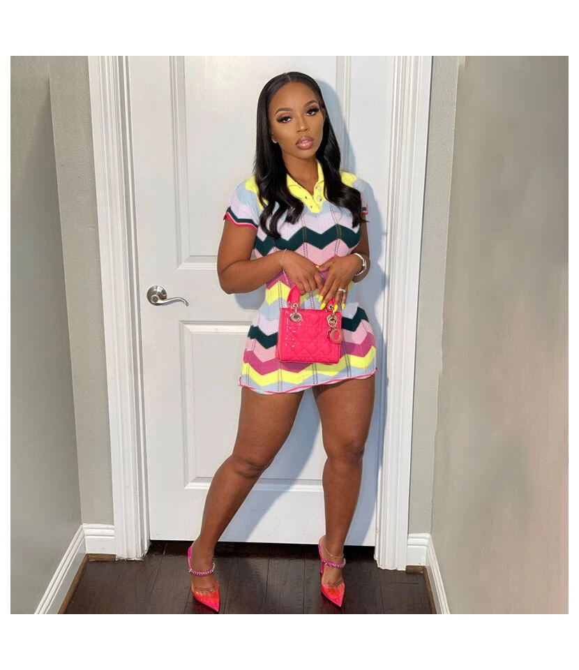 Printing Lace-Up Waist Single-Breasted Ladies T Shirt Dress Wholesale Clothing Vendors SD190539