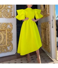 Elegant Flower Petal Sleeve Solid Color Square Neck Long Dress Wholesale Dresses V5923041200032