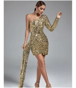 Sexy Slant One Shoulder Sequins Slim Splicing Dress Wholesale Dresses N5923081800035